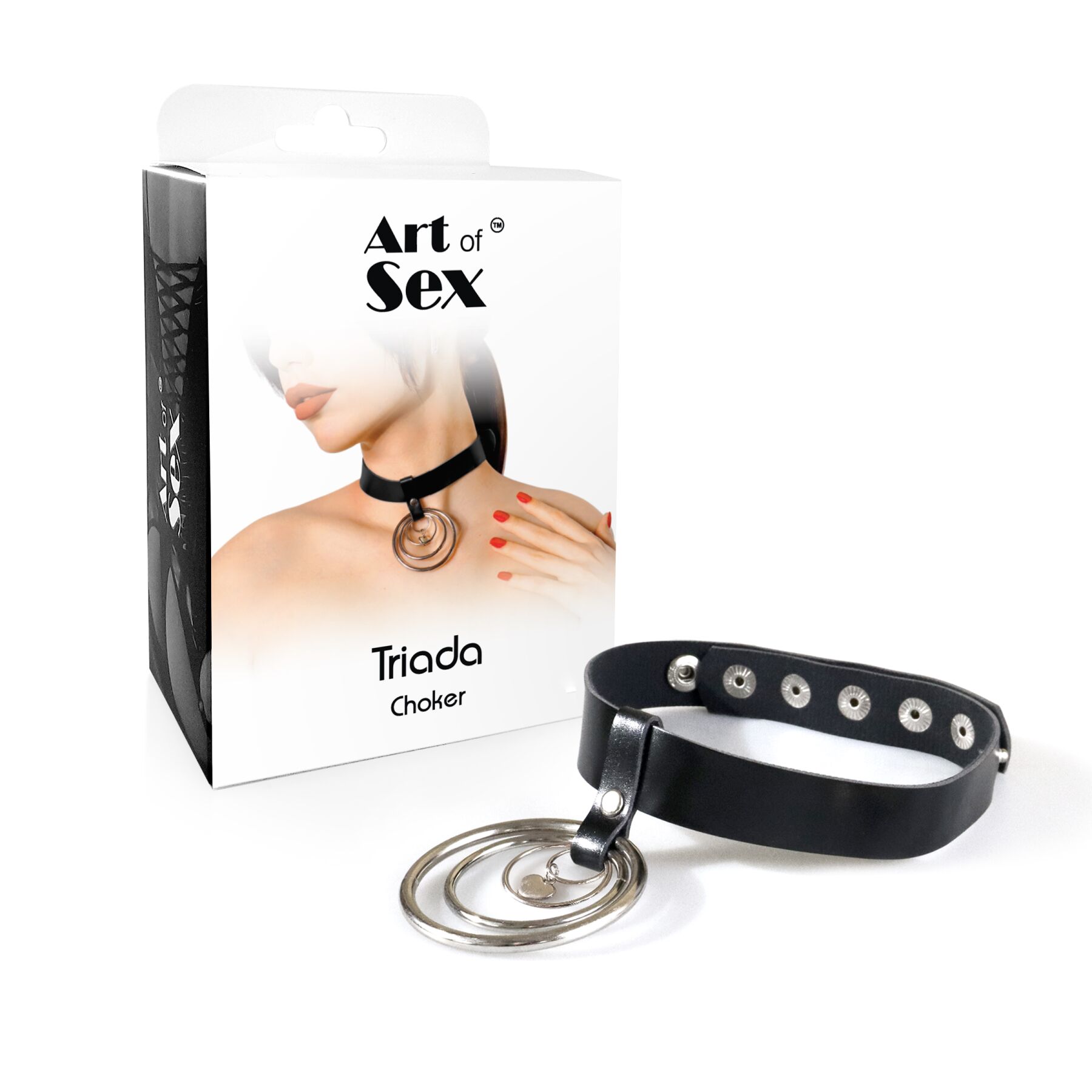 Чокер із натуральної шкіри Art of Sex – Triada, колір чорний