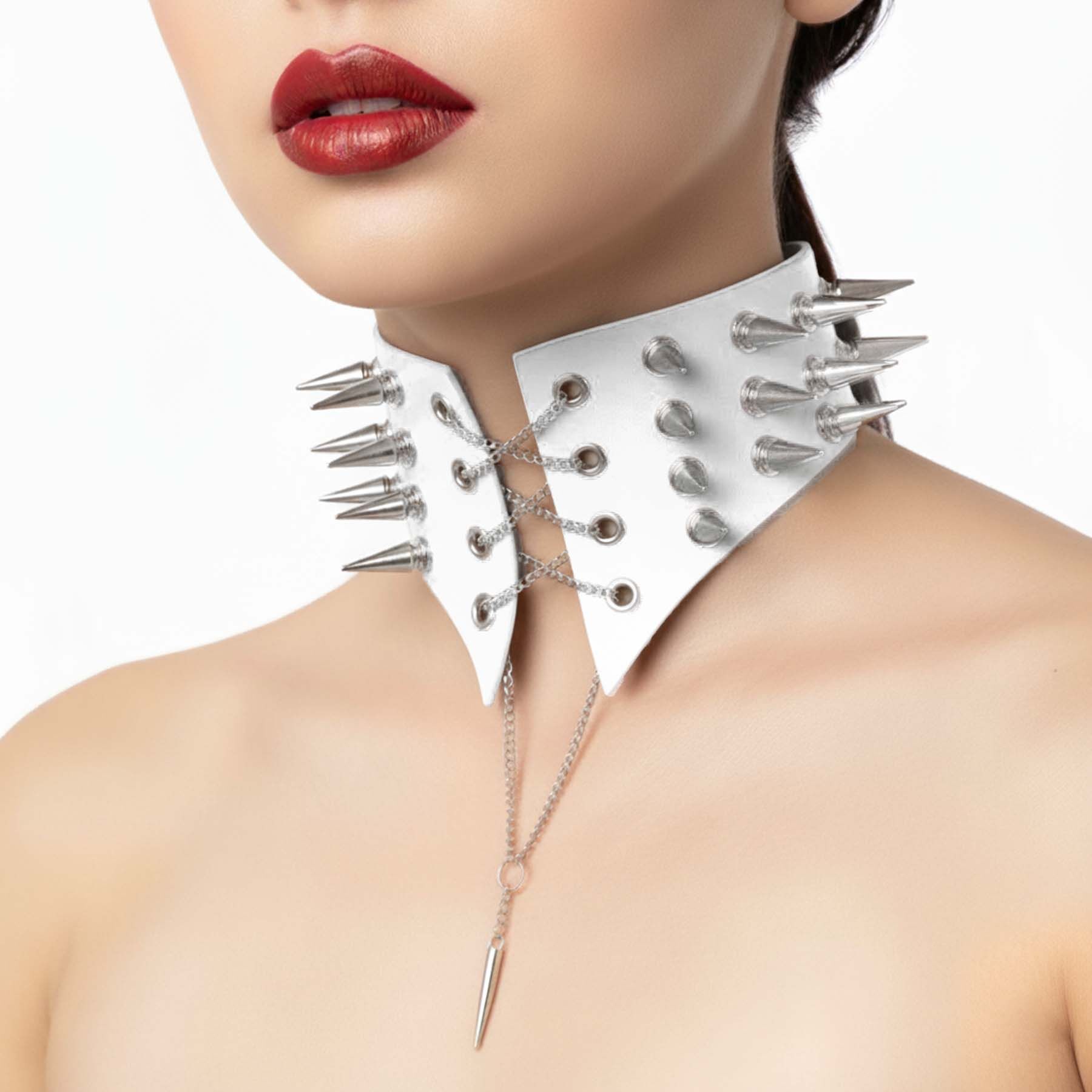 Чокер комір з шипами Art of Sex – Ariadna, натуральна шкіра, колір білий, XS-M