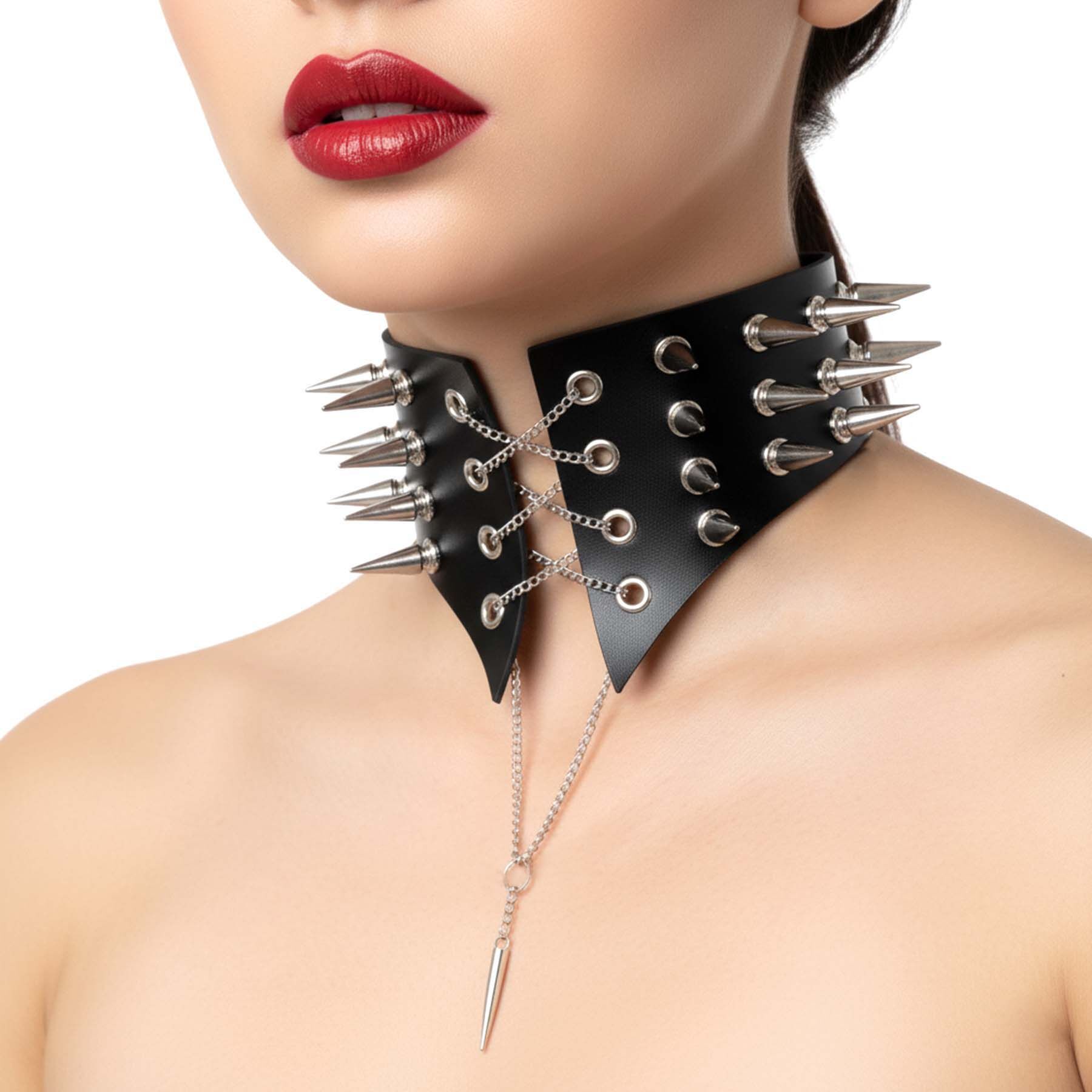 Чокер комір з шипами Art of Sex – Ariadne, натуральна шкіра, колір чорний, XS-M