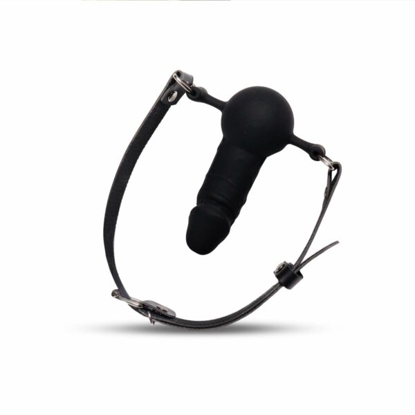 Кляп силіконовий з фалоімітатором Art of Sex – Phallus, натуральна шкіра, чорний