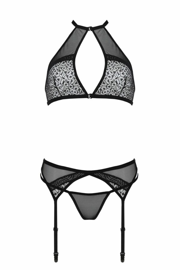 Комплект білизни Passion SATARA SET XXL/XXXL black, топ, пояс для панчіх, стрінги