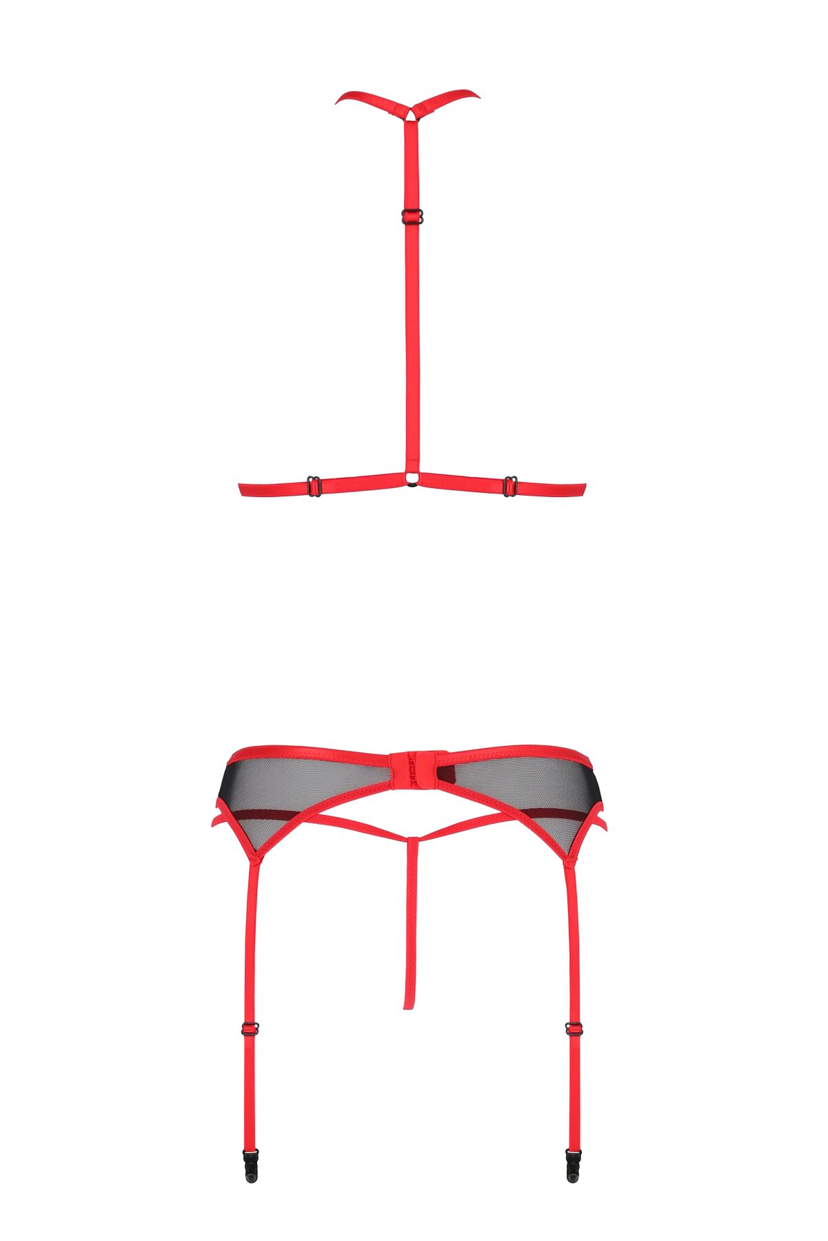 Комплект білизни Passion SATARA SET XXL/XXXL red, топ, пояс для панчіх, стрінги