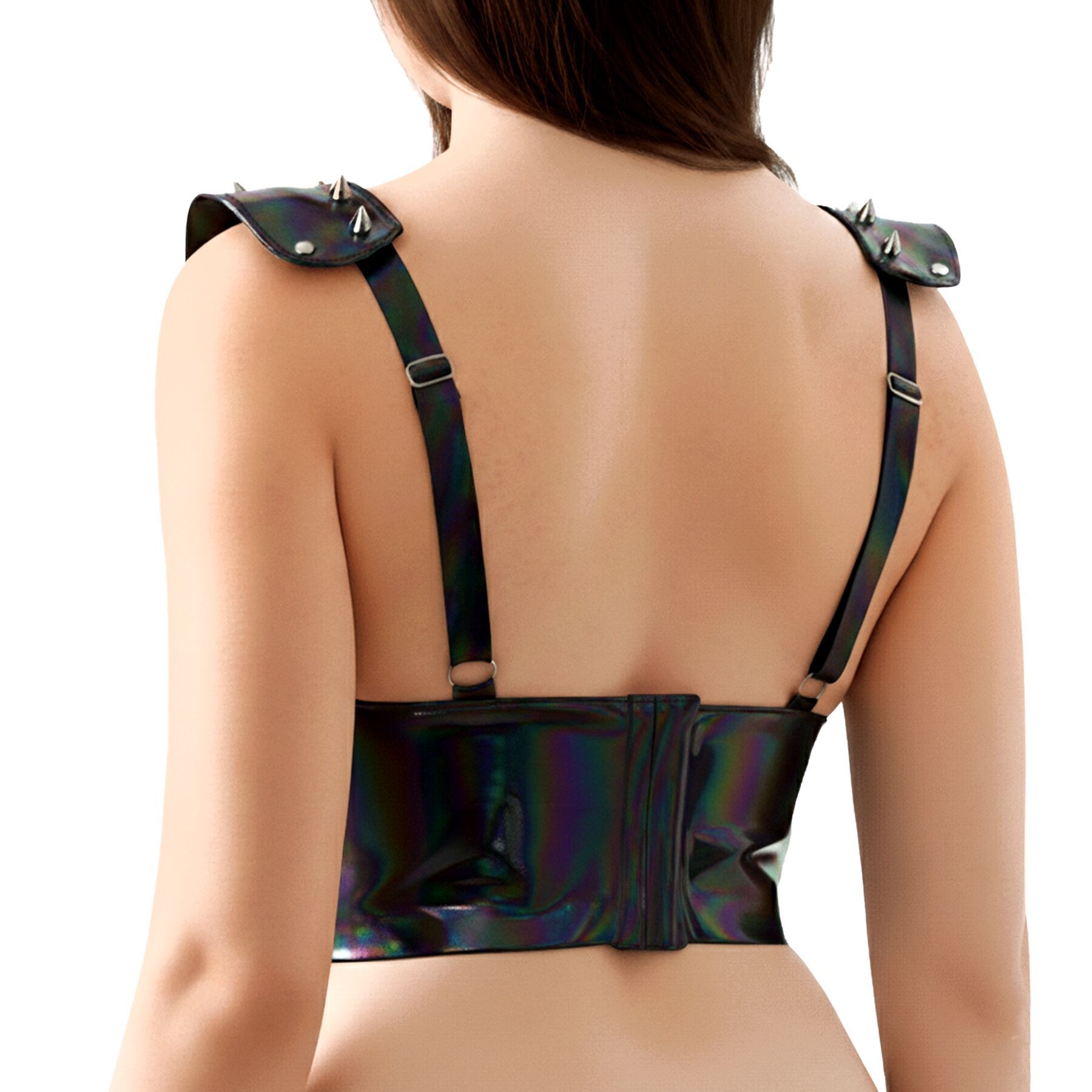 Лакований вініловий ліф з шипами Art of Sex – Mistress, чорний з ефектом голограми, розмір M