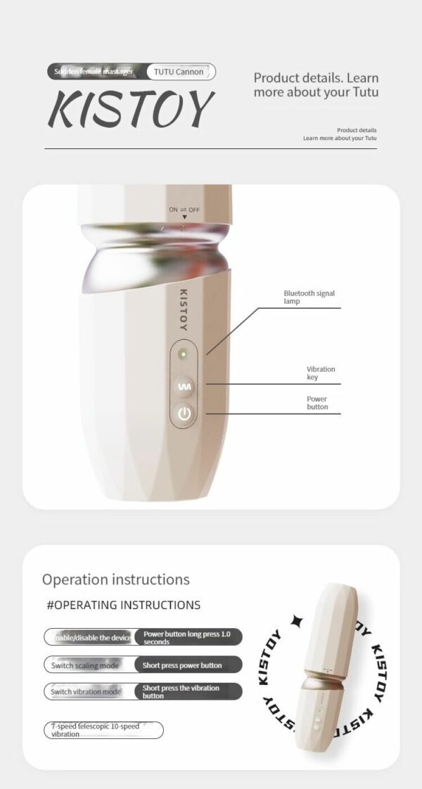 Міні секс-машина KISTOY Tutu на присосці, пульсація, вібрація, підігрів