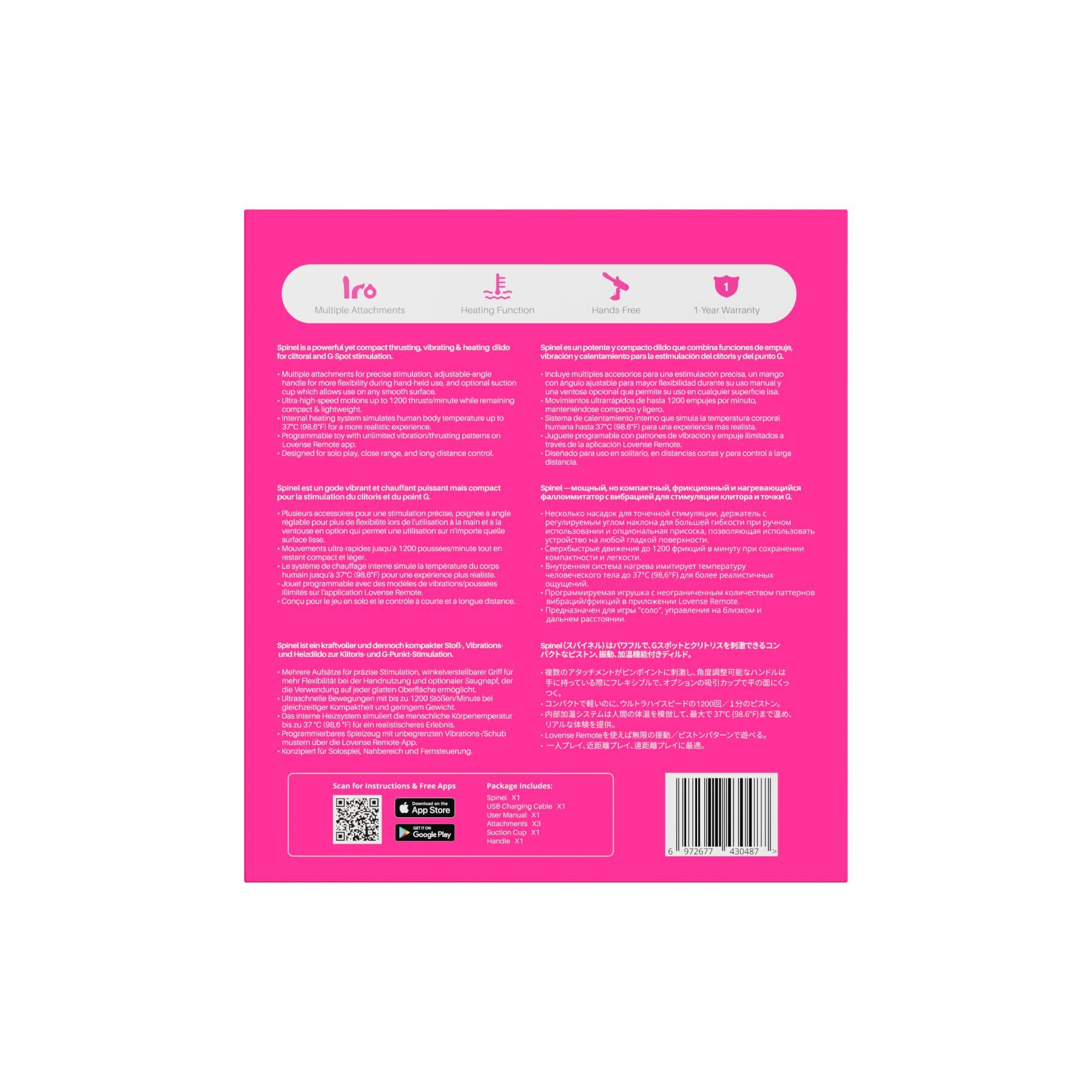 Пропонуємо купити смарт-міні секс-машину Lovense Spinel, яка поєднує в собі потужність, компактність і функціональність. Секс-машина реалістично імітує фрикції, доповнюючи їх вібраціями для максимального задоволення. Підігрів стовбура до 38–43 °C робить використання секс-машини особливо комфортним і приємним. У комплекті постачаються відразу три насадки: прямий дилдо, вигнута насадка для стимуляції точки G та м’яка кругла насадка для стимуляції клітора. Насадку для клітора можна комбінувати з іншими! Без синхронізації із застосунком є 4 швидкості фрикцій та 7 режимів вібрації, а під час гри в застосунку відкриваються необмежені можливості — створення власних режимів, передача керування та багато іншого. Секс-машина підтримує підʼєднання до вебкам-сайтів з активацією донатами. Компактна, на надійній присосці, повністю водонепроникна, ця секс-машина відкриває неймовірні горизонти для самостійного або парного задоволення!