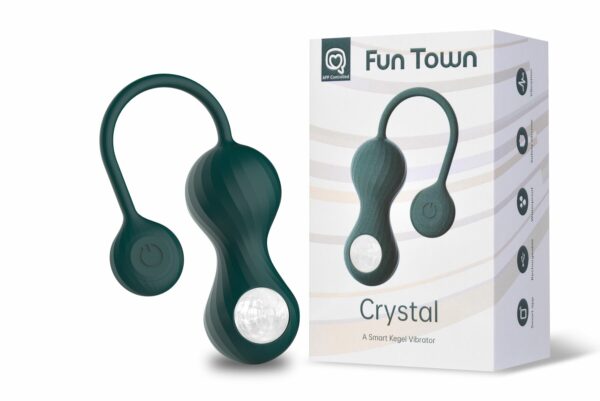Якщо хочете розвинути інтимні м’язи та посилити сексуальне задоволення, то рекомендуємо купити вагінальні кульки з вібрацією Fun Town Crystal. Подвійна іграшка з ніжного силікону, з обтяженням у вигляді скляної кулі та 10 рівнями встановлених вібрацій допомагає посилити м’язи тазового дна й робить тренування максимально приємним. Можливість керування телефоном значно розширює межі використання вібратора. Скляну кульку можна використовувати як окремий вагінальний тренажер.
